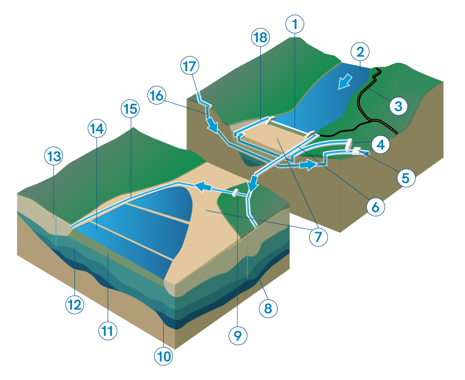 The Granite Reef Underground Storage Project (GRUSP) and the New River-Agua Fria River Underground Storage Project (NAUSP) store water in large underground aquifers, a process known as groundwater recharge.